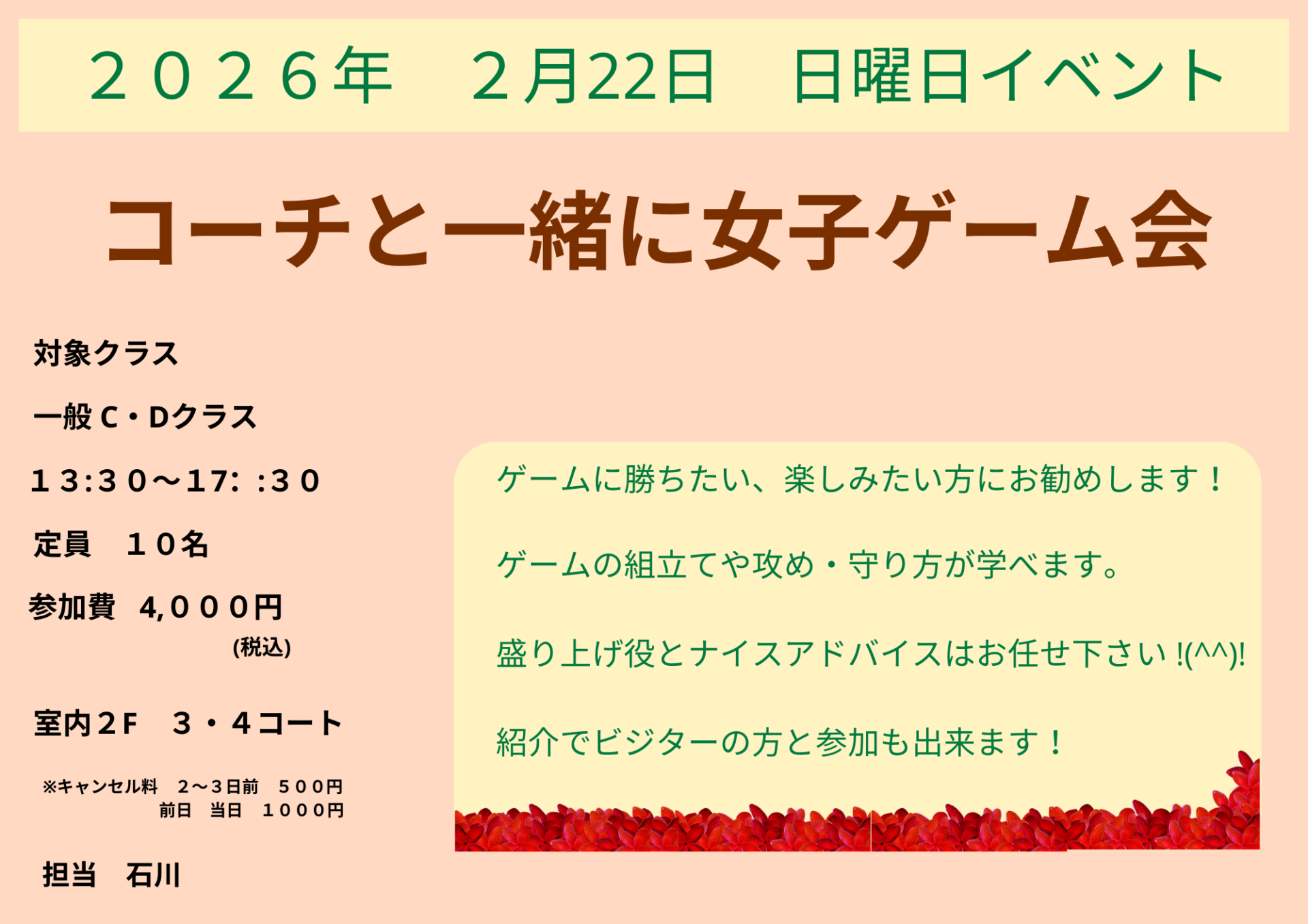 日付:2/22(日)【コーチと一緒に女子ゲーム練習会】