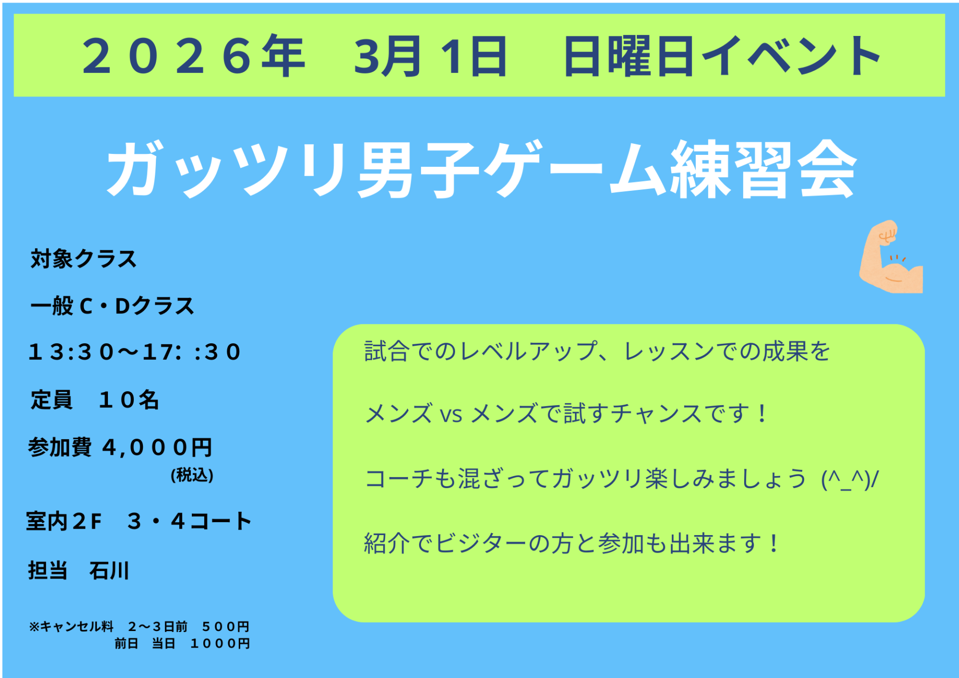 日付:3/1(日)【ガッツリ男子ゲーム練習会】