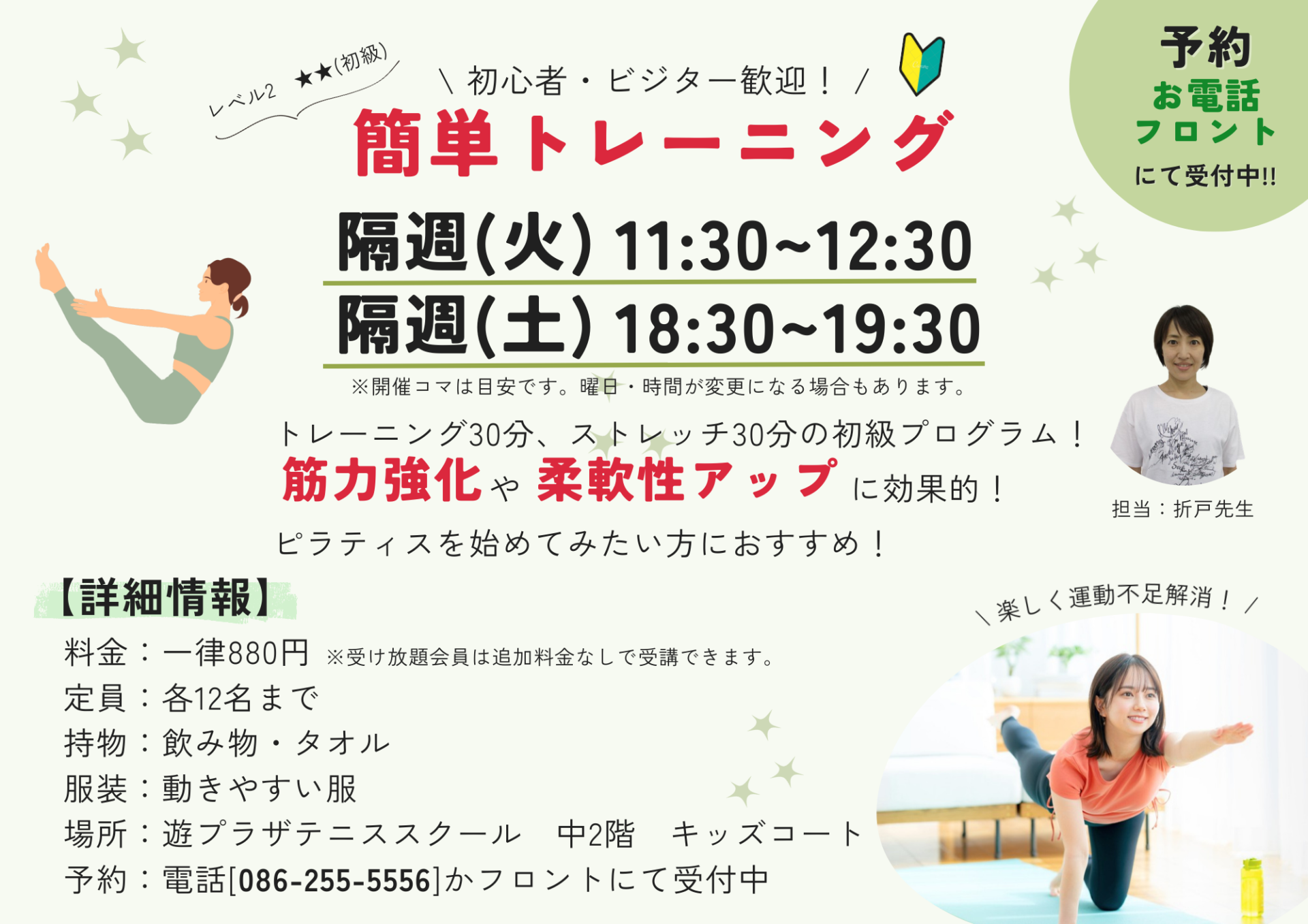 新レッスン「簡単トレーニング」(ピラティス)が追加!