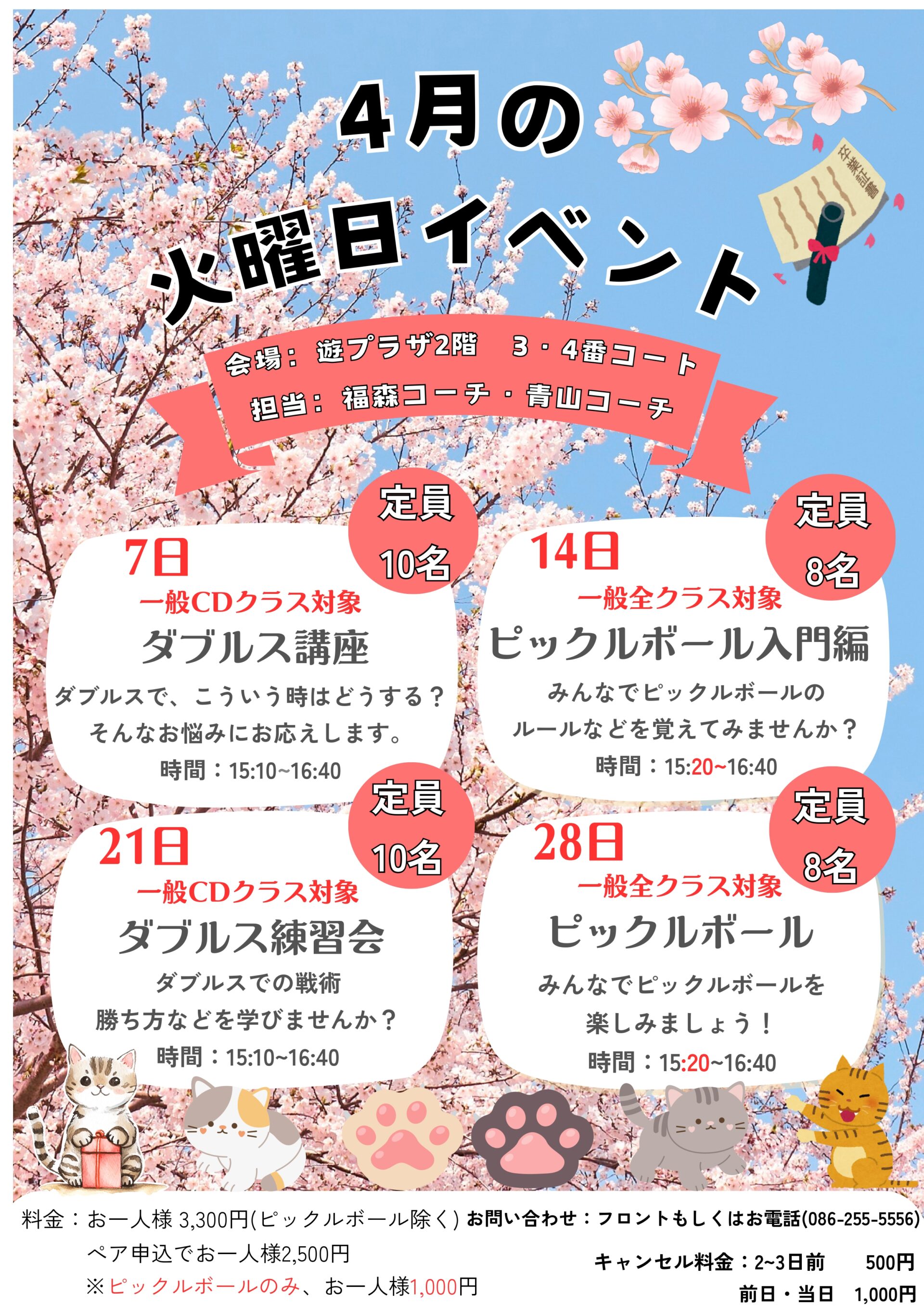 各種キャンセル料金:2~3日前 500円 / 前日・当日 1,000円