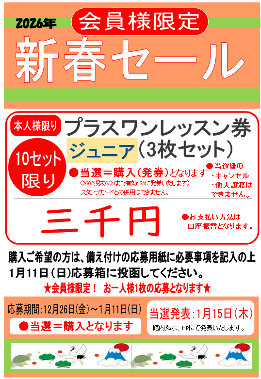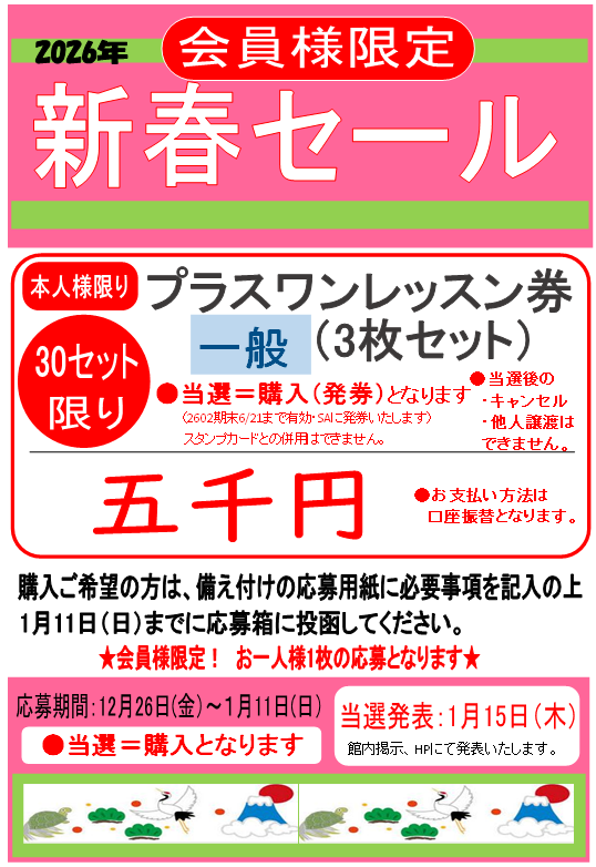 HOME スクール生へのお知らせ 新春セールのお知らせ